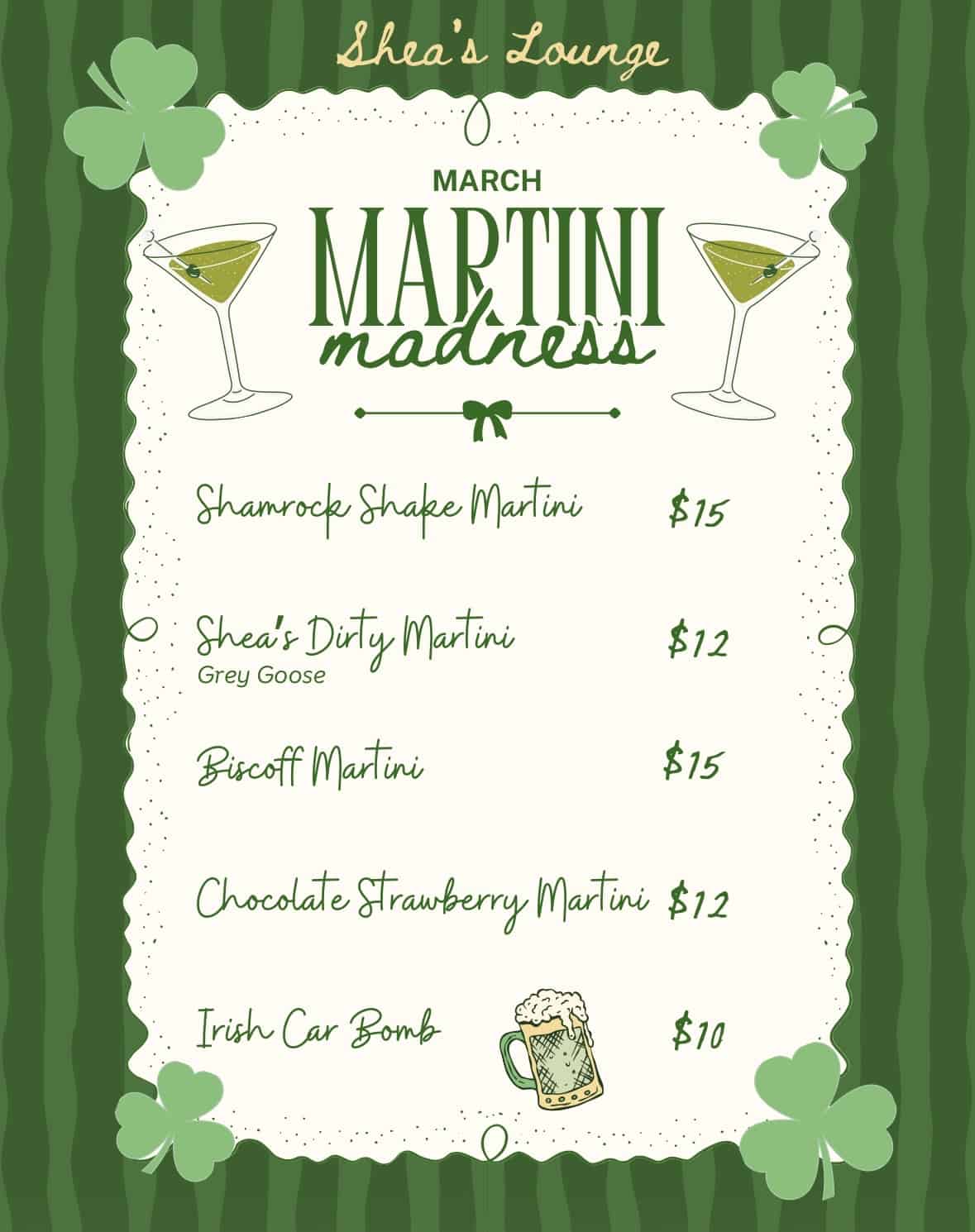 Shea’s Lounge Specialty Cocktail Menu